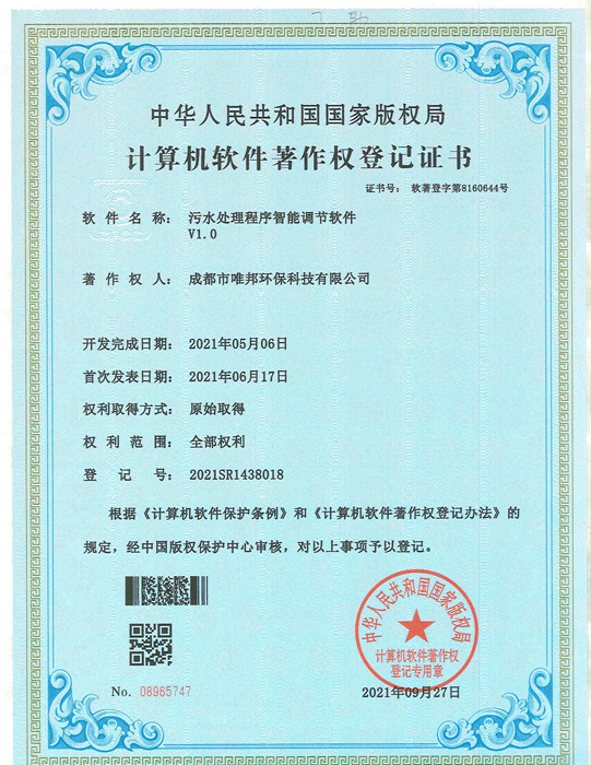 低耗能農村污水處理設備-證書